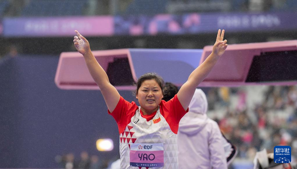 9月5日,在巴黎残奥会田径女子铅球F64级决赛中,中国选手姚娟以12米53的成绩夺得冠军,中国选手杨月以11米77的成绩获得季军。