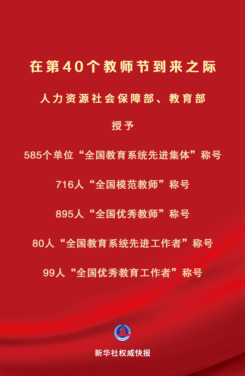 庆祝第40个教师节暨全国教育系统先进集体和先进个人表彰活动9月8日在京举行。