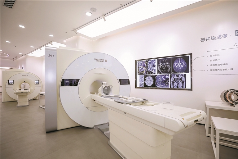 国家高性能医疗器械创新中心联合联影研发的全球首台5.0T人体全身医学磁共振成像系统。