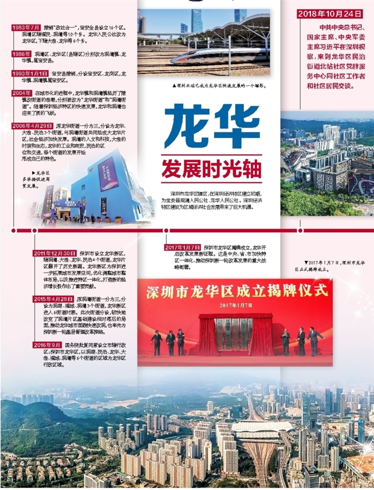 2017年1月7日 深圳市龙华区揭牌成立,龙华开启改革发展新征程。这是中央、省、市加快特区一体化、推动深圳新一轮改革发展的重大战略部署。
