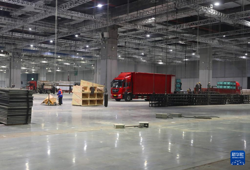 10月22日,这是国家会展中心(上海)的进博会布展搭建现场。新华社记者 方喆 摄