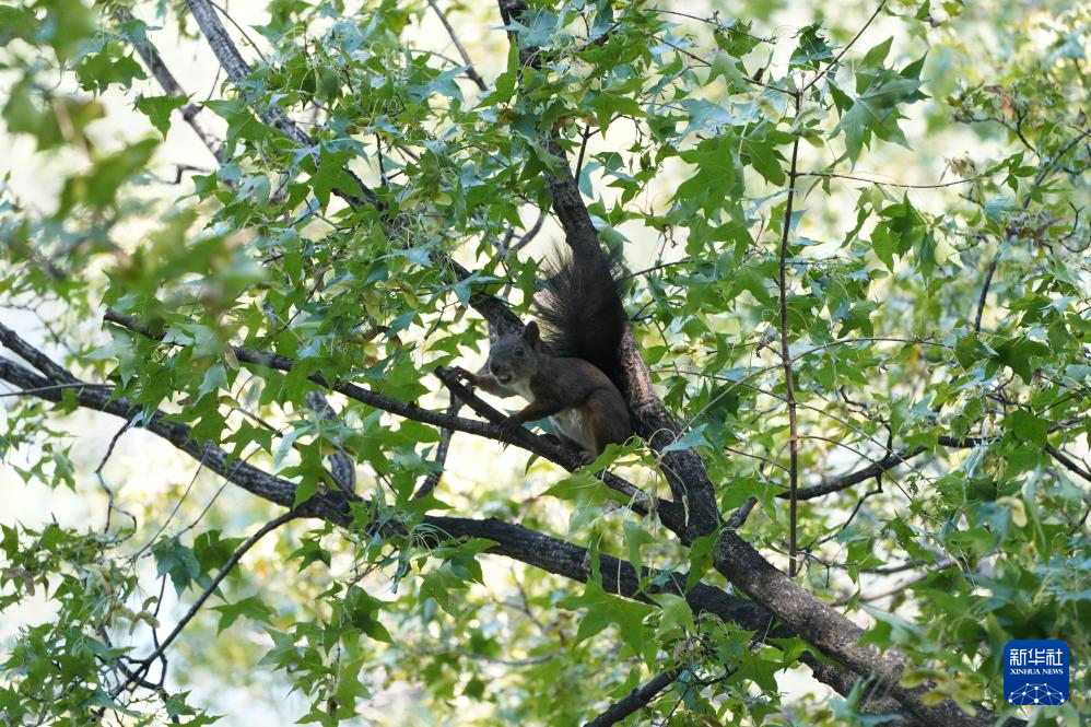 10月24日,一只松鼠在颐和园林间觅食。新华社记者 尹栋逊 摄