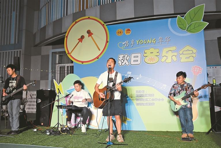 龙华新闻讯(记者 黄晓华 通讯员 姚广燕/文 记者 陈建华/图)为丰富青年职工文化生活,搭建青年与城市对话平台,增强社区凝聚力,近日,由福城街道桔塘社区党委主办,桔塘社区工会联合会、桔塘社区团委承办的“秋日音乐会,唱享YOUNG年华”主题音乐节活动在辖区新塘幼儿园拉开帷幕。来自桔塘社区青年乐队、俊莹艺术团、新塘幼儿园、锦鲤教育城舞蹈培训机构30名演职人员、200余名邻里观众因音乐集结,在这个秋夜感受激情与青春的碰撞。