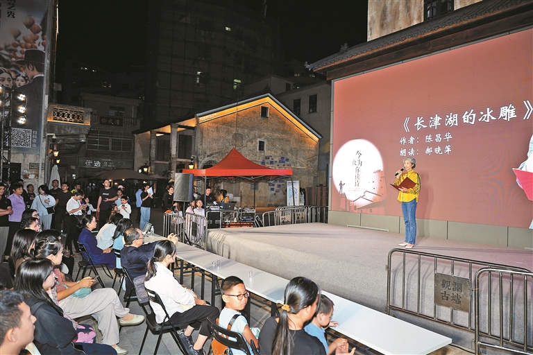 据悉,“今夜为你读诗”活动是龙华区打造的全新阅读IP,由中共深圳市龙华区委宣传部主办,龙华区融媒体中心承办,是龙华融媒移动广播“龙华之声”策划的一项长期文化活动。从6月起至12月,每月首个周六的傍晚都将在观澜古墟举行一场“开放麦”读诗活动。活动为市民朋友们提供一个练习、打磨朗读技巧的平台,朗读新人可以在“开放麦”现场带来朗读首秀,专业朗读者也能在此找到自己的舞台,绽放光芒。龙华将搭建更多平台、举办更多活动,继续创造处处可读、时时可读、人人可读的文化条件,让满城都是读书人,为辖区文化事业高质量发展注入新的活力。