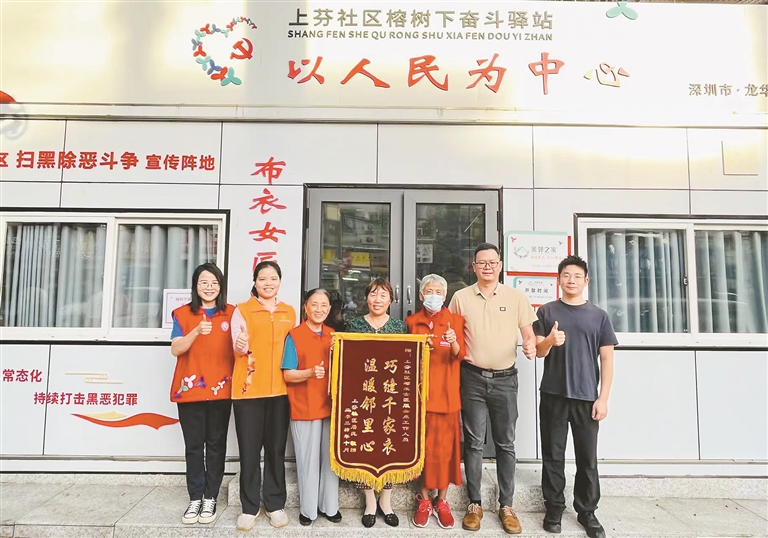 龙华新闻讯(记者 王雪敏 通讯员 林泽鑫/文 记者 蔡维泽/图)近日,民治街道上芬社区内,一面红彤彤的锦旗在阳光下熠熠生辉,上面“巧缝千家衣 温暖邻里心”的金灿灿大字格外引人注目。这面精美的锦旗是社区居民韩阿姨亲手赠送给“布衣女匠”巾帼志愿服务队的,以此表达他们对社区以及志愿服务队长期以来尽职尽责、为民服务的感激之情。