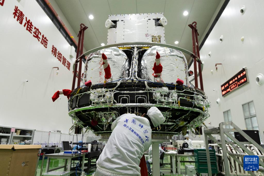 11月4日,在位于上海的中国科学院微小卫星创新研究院总装厂房,科研人员对“微笑”卫星进行最后的检查。新华社记者 金立旺 摄