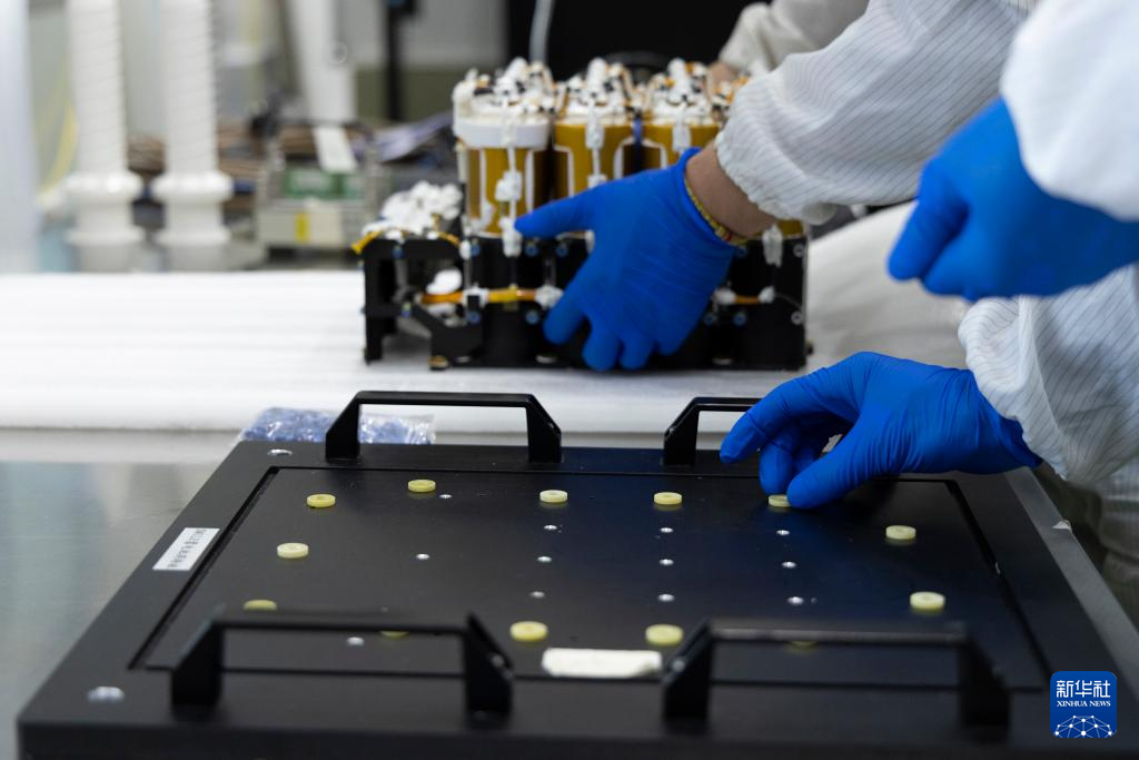 11月4日,在位于上海的中国科学院微小卫星创新研究院总装厂房,科研人员准备把“微笑”卫星使用的电池组单独装箱。新华社记者 金立旺 摄