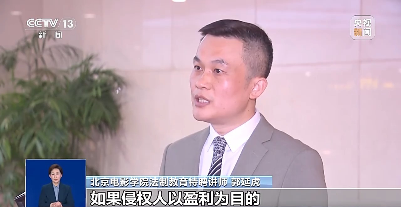 北京电影学院法制教育特聘讲师 郭延虎:这种侵权行为它扰乱了电影市场的秩序,损害了社会的公共利益,如果侵权人以盈利为目的,侵害他人著作权违法所得数额较大或者有其他严重情节的,构成侵犯著作权罪,要依法受到刑法的处罚。