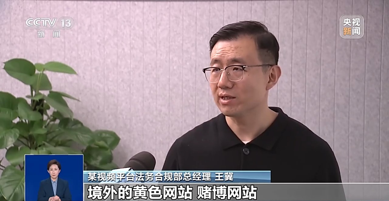 某视频平台法务合规部总经理 王冀:这些网站的共同特点是他们都是把服务器架在海外,并且他们没有在中国做任何的相应的一个备案,这样的网站其实对青少年的危害也是很大的,它除了提供盗版的资源,这些网站往往都会对接境外的黄色网站、赌博网站,提供了很多有害的信息。