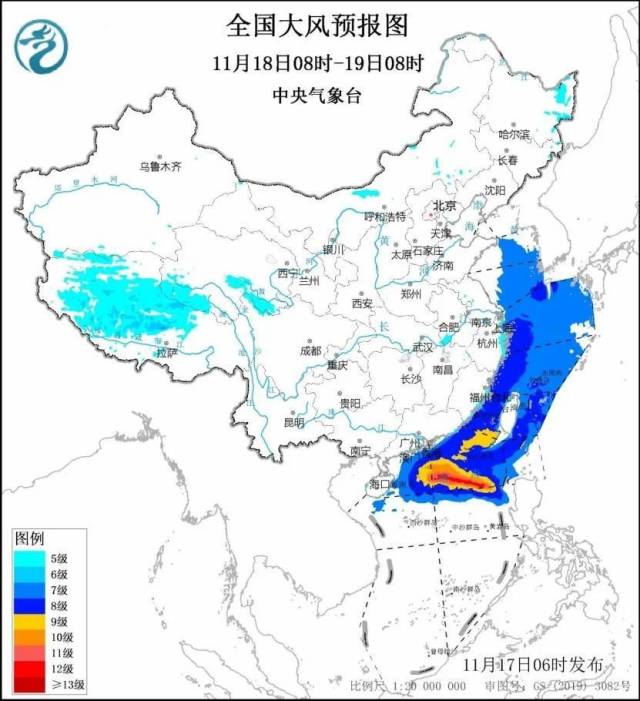 中央气象台11月17日6时发布台风蓝色预警: