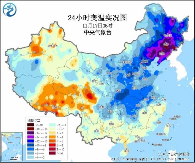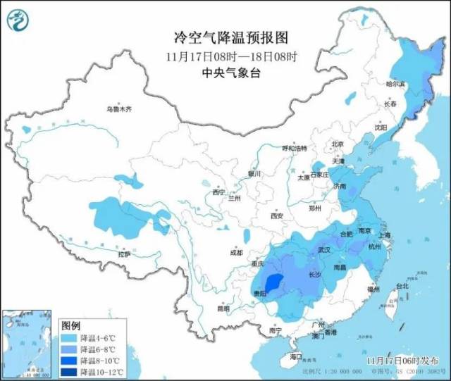 中央气象台11月17日6时继续发布大风蓝色预警: