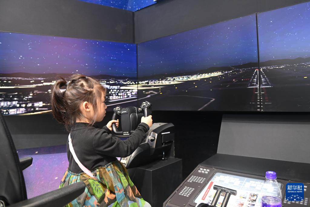 11月19日,在2024年世界互联网大会“互联网之光”博览会上,小朋友在数字飞行模拟舱体验操作飞机。新华社记者 黄宗治 摄