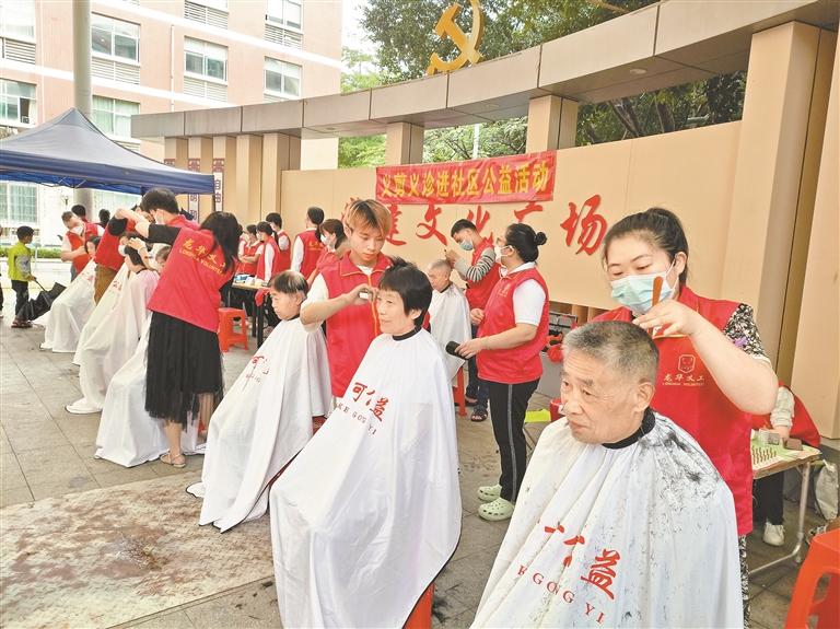 龙华街道景龙社区每月开展便民义剪义诊活动,服务“一老一小”。