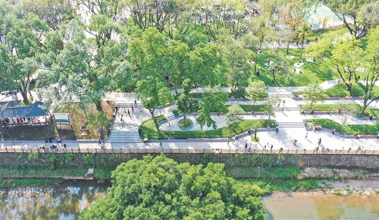 龙华公园与龙华河碧道相连,河岸景观优美。