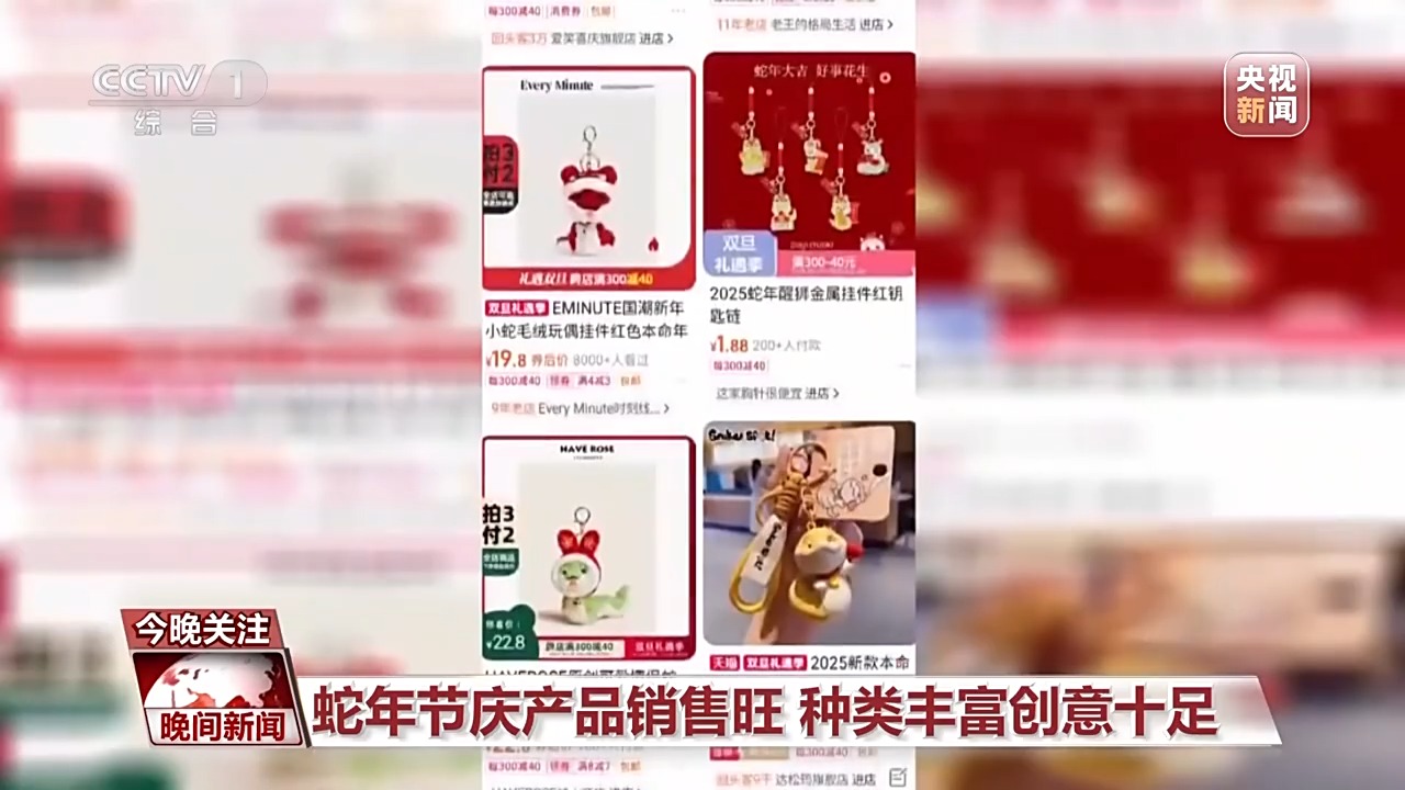 临近新年,各地蛇年元素商品纷纷上架,活泼可爱的蛇年生肖挂件以及关于生肖蛇的年画、红包、日历等各类产品,迎合了现代年轻人的审美,受到市场热捧。