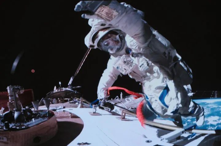 12月17日在北京航天飞行控制中心拍摄的神舟十九号航天员宋令东在空间站组合体舱外工作间隙挥手致意的画面。新华社记者 李杰 摄