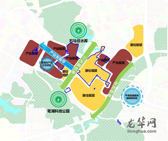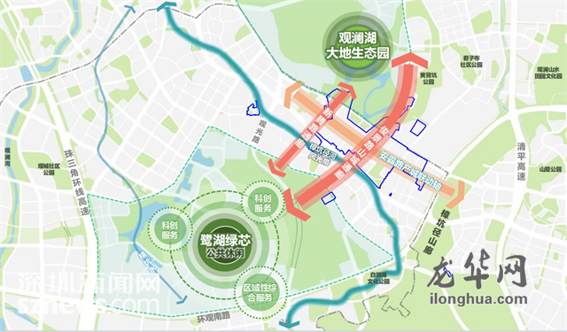一是围绕鹭湖中心城规划未来发展方向,进行连片分区考量,并由中心向整个街道、龙华区延伸,对街道现状空间内产业落后的、低效的,整体考量,先行研究规划。