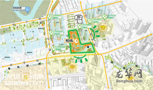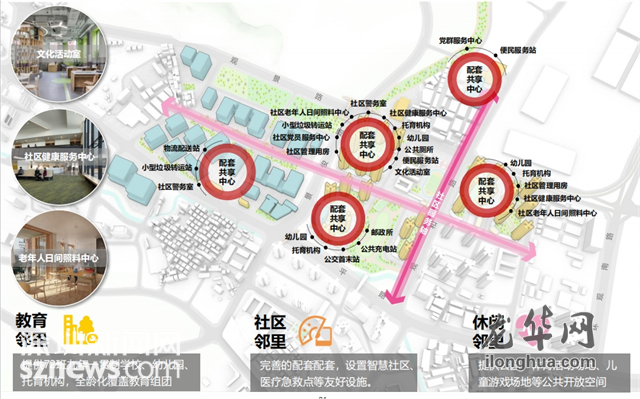 第五个方面是公园邻里。让公园贴近每一个社区,营造一流的龙华特色人居环境,以公园为核心的生活方式,城绿相融居住街坊。
