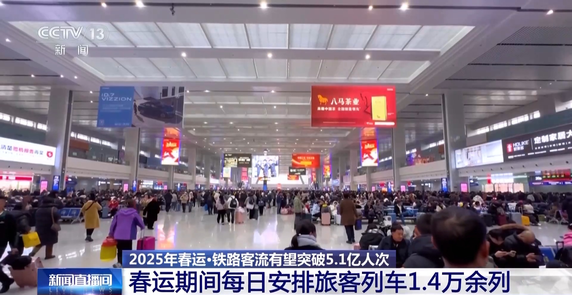 据介绍,2025年春运全国铁路发送旅客有望突破5.1亿人次,日均1275万人次,同比2024年春运增长5.5%。