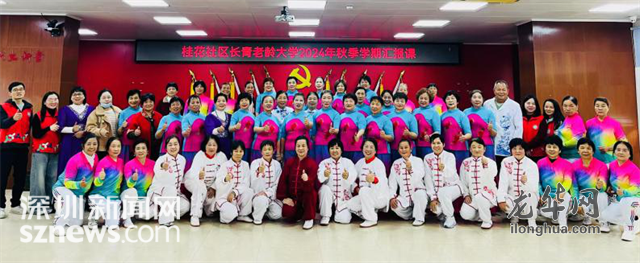 近日,观澜街道桂花社区开展了“银晖炫彩、乐享晚年”2024年长青老龄大学秋季班教学成果汇演活动。桂花社区党委委员、社区长青老龄大学副校长及全体师生100余人参加典礼。