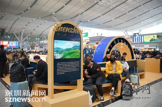 同时,为营造更加文明的出行环境,在候车室中央新建“迎春花”书香驿站,为旅客提供免费阅读空间;在候车室东侧,新建一个小型网红打卡点——魔方屏,上面亮眼的字样“来了就是深圳人”展示着深圳这座城市的热情。车站还设立了春运应急医疗点,为旅客安全出行提供坚实保障。