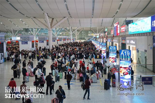 据悉,深圳铁路今天预计共发送旅客超26万人次。其中,深圳北站预计发送旅客17.5万人次。深圳北站客流主要发往云贵、江西、湖南、湖北、福建等地区。当日深圳北站增开至武汉、南昌、赣州西、长沙南、广州南等方向列车,从车票预售情况来看,湖南、川渝方向车票较为紧张。今年春节假期共计8天,春节中短途出行旅客较往年将有较大幅度增长,旅游、探亲客流仍将保持旺盛出行趋势。