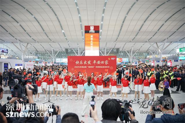 当日上午9时许,深圳北站候车室内已经人声鼎沸,热闹非凡。一曲“我爱你中国亲爱的母亲,我为你流泪也为你自豪……”那激昂的旋律和深情的歌声瞬间吸引候车室内旅客们的注意。身着统一制服的“迎春花”服务队员们紧随其后,伴随着欢快的旋律,在候车大厅中央翩翩起舞,为旅客们送上新春的美好祝愿。