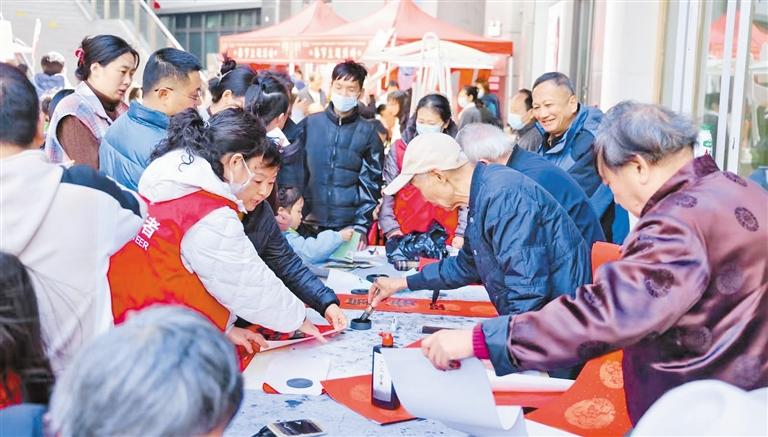 活动现场热闹非凡,12个便民摊位涵盖了多个领域,满足了居民的不同需求。在换书活动区域,深圳图书馆北馆带来300余本图书,居民们带着自己闲置的书籍前来交换,分享阅读的乐趣,让知识在交流中不断传递。写春联和剪纸摊位前围满了人,共理人挥毫泼墨,写下一副副寓意吉祥的春联;旁边,共理人则展示着精湛的剪纸技艺,一张张精美的剪纸作品在他们手中诞生,为新春增添了浓浓的喜庆氛围,让传统技艺在现代生活中焕发出新的活力。