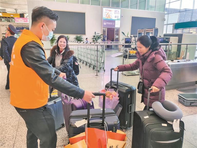 ▲北站先锋服务队队员帮旅客拿行李。