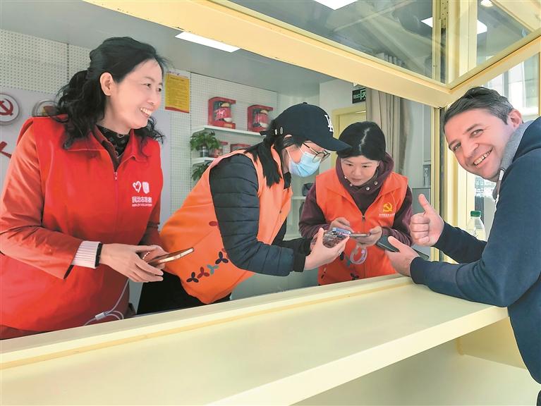 外籍旅客为北站先锋服务队队员点赞。