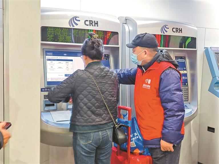 北站先锋服务队队员协助旅客改签。