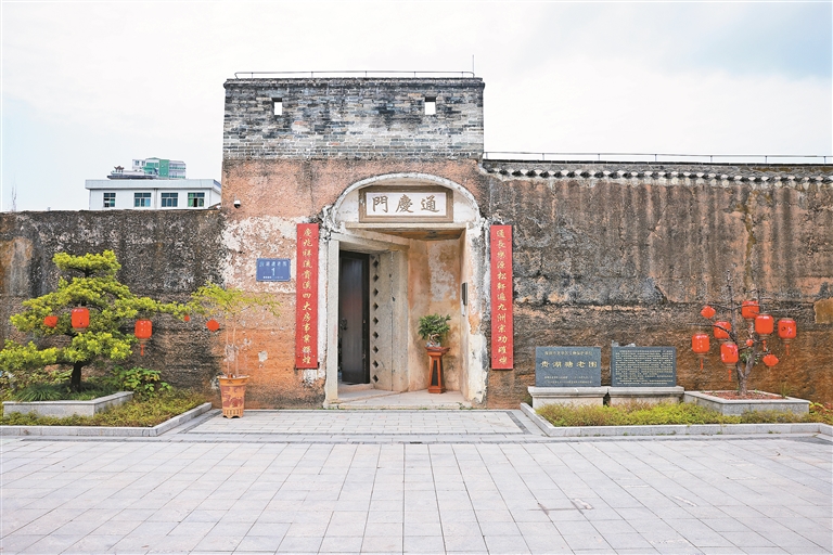 贵湖塘老围入口处“通庆门”的牌匾让人感受到浓郁历史气息。