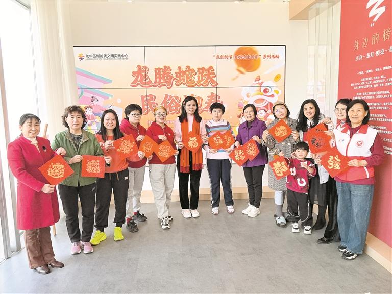 龙华新闻讯(记者 王雪敏 通讯员 王婷鹤 李璟滢/文 记者 蔡维泽/图)春节期间,龙华区新时代文明实践中心为市民准备了“我们的节日·欢乐中国年”系列主题活动,活动从除夕持续至年初八,每天一场不一样的文化体验,吸引辖区广大居民加入到新春潮玩活动中来,弘扬中华优秀传统文化,让留深过年的市民感受到龙华文明不一样的“暖度”。