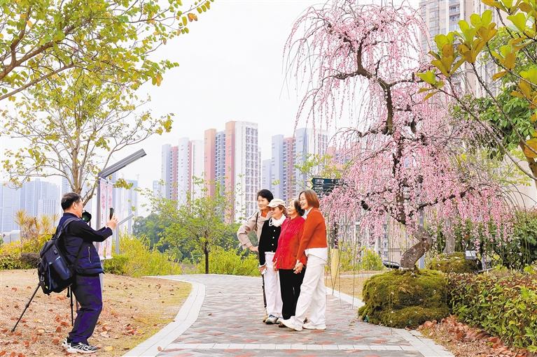 市民在深圳北站中心公园游园赏梅。