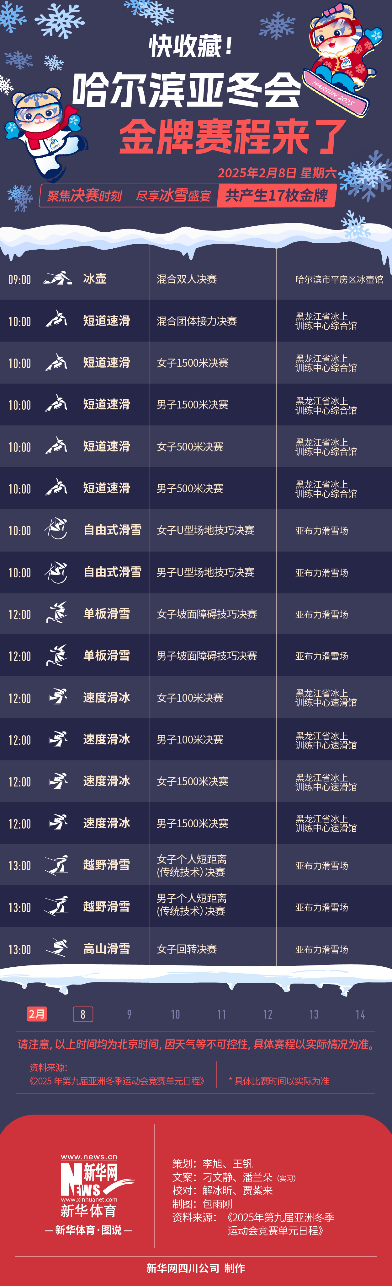 2025年哈尔滨亚洲冬季运动会即将开幕,新华体育特别推出哈尔滨亚冬会金牌赛程,聚焦决赛时刻,助你尽享冰雪体育盛宴。一起来看!