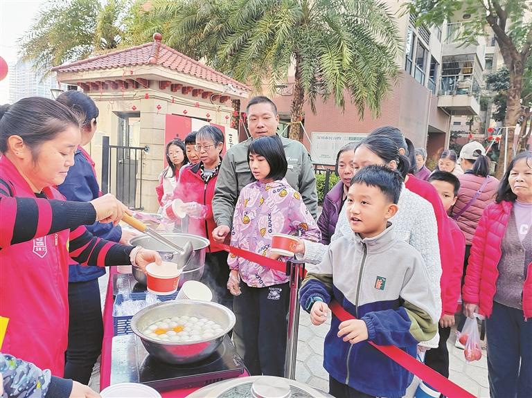 新和社区居民品尝元宵汤圆。