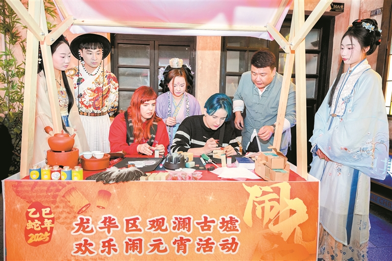 “篆刻体验太神奇了。”有外国友人参与元宵节活动时,亲身体验了非遗篆刻,认为这种以刀为工具,用手去表达内心想法的艺术,给人留下深刻、具体的印象。