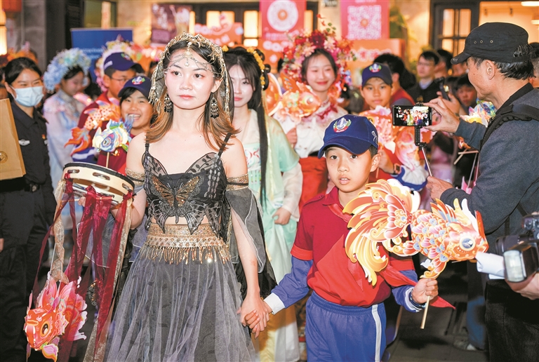 “因为是元宵节,好多市民都很积极参与,这也给我们汉服爱好者提供了一个全面展示汉服的机会,很不错。”参与汉服花灯巡游环节的马小姐表示,随着大家对中华优秀传统文化关注度不断提高,大家对汉服的接纳度也随之提升。“此前,我们也参与过身着汉服在古墟巡游的活动,这一次大家按照自己的喜好搭配服饰,小伙伴们热情都很高涨。”