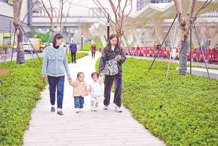 据相关负责人介绍,项目旨在打造龙华重要商业片区中近悦远来的绿色生态休闲空间,提出了三大核心设计策略。一是创造最弹性的活动空间,项目科学规划灵感花园、静谧花园、入口广场、草坪剧场、树阵广场、林下休憩等区域,为居民群众提供休闲活动的公共绿地公园。二是串联最便捷的城市走廊,项目有机融入深圳“两馆”和红山6979商业综合体,更好满足通行、休憩、游玩、活动等需求。三是引领最艺术的沉浸体验,项目结合深圳“两馆”所蕴含的文化特质,以艺术性、文化性作为公园核心内涵,融入文化交流、科技互动等多种体验元素,打造集光影、艺术等为一体的特色公园。