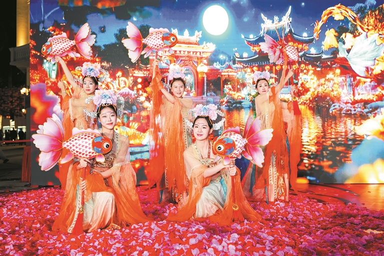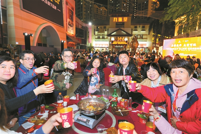 盆菜宴、传统民俗节目鱼灯舞、乐队表演等节目轮番上演,现场气氛热烈、欢声笑语不断。随着美妙的“花雨”缓缓落下,