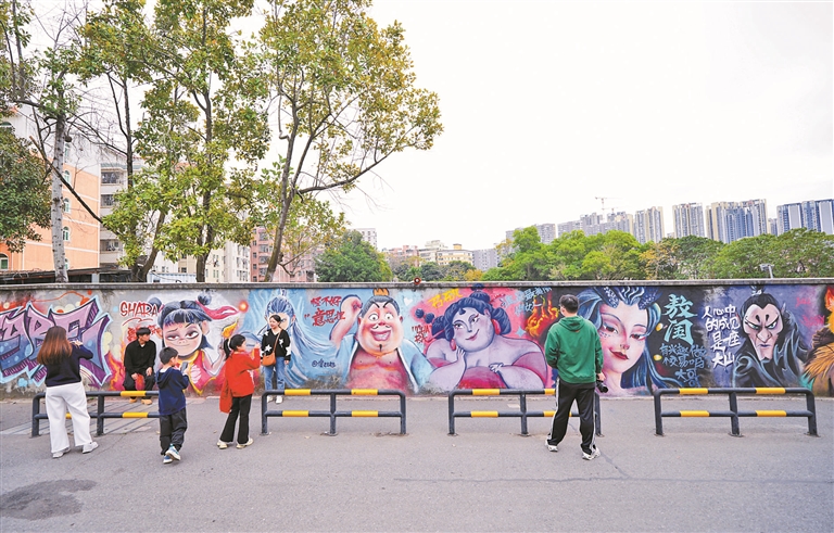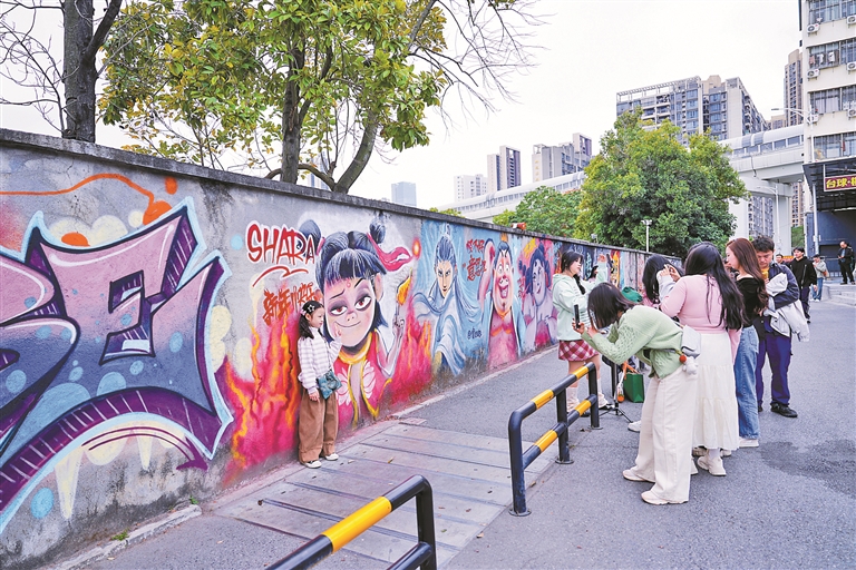 龙华新闻讯(记者 王雪敏 通讯员 林泽鑫/文 记者 蔡维泽/图)近日,龙华区民治街道上芬社区的一面哪吒涂鸦墙“火”了。墙面上,哪吒、敖丙、太乙真人、申公豹等动画人物形象栩栩如生、跃然眼前,成为深圳城中村网红打卡点,吸引了众多居民驻足观赏、拍照留念。