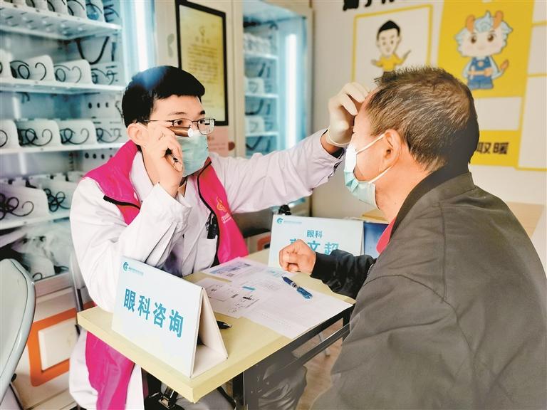 活动现场精心设置了血压测量、血糖测量、耳喉鼻检查、视力测量以及眼科咨询五个服务摊位,此外,还特别融入了针对新业态群体的需求调研服务环节。活动过程中,耳喉鼻检查、视力测量及眼科咨询摊位人气高涨,备受居民青睐。居民在工作人员的引导下有序排起长队,向医生咨询健康问题。