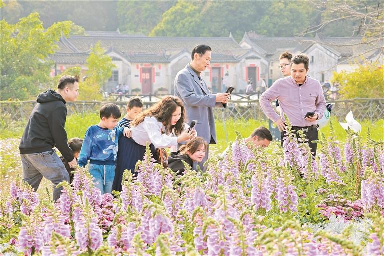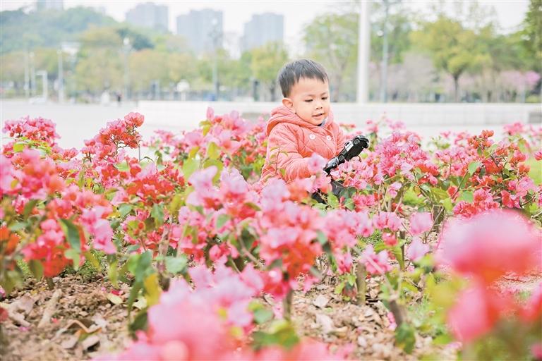 在观澜版画村,一场春日的盛景正在上演。古朴的村落被一片花海环绕,游客们穿梭其中,或驻足拍照,或轻嗅花香。孩子们在花丛中奔跑嬉戏,欢声笑语回荡在古村的每一个角落。不远处的草莓园里,一片生机盎然。游客们提着小篮子,穿梭在草莓垄间,采摘着鲜红欲滴的草莓。一颗颗草莓在绿叶的映衬下,宛如红宝石般诱人。游客们一边品尝着新鲜的草莓,一边享受着田园生活的惬意,感受着大自然的馈赠。在世纪广场,簕杜鹃花开得正艳。粉红的花朵如云似霞,将广场装点得如诗如画。小朋友们在花丛中穿梭,兴奋地打卡拍照,留下春天的印记。家长们则在一旁微笑着记录下美好的瞬间,孩子们的欢声笑语与簕杜鹃的芬芳交织在一起,构成了一幅温馨的画面。在广培社区公交站台附近的炮仗花也迎来了盛开的季节。橙黄的花朵如瀑布般倾泻而下,为社区增添了一抹温暖的色彩。居民们在花下聊天、散步,享受着春日的宁静与美好。炮仗花的绚烂,不仅装点了社区的环境,也点亮了居民们的心情。沿着牛湖水碧道漫步,春光无限好。碧道两旁,绿树成荫,繁花似锦。市民们或骑行,或慢跑,或悠闲地散步,欣赏沿途的美景。清澈的湖水在阳光下波光粼粼,与两岸的花草树木相映成趣,构成了一幅动人的春日画卷。人们在这里尽情呼吸着新鲜的空气,感受着大自然的宁静与美好。
