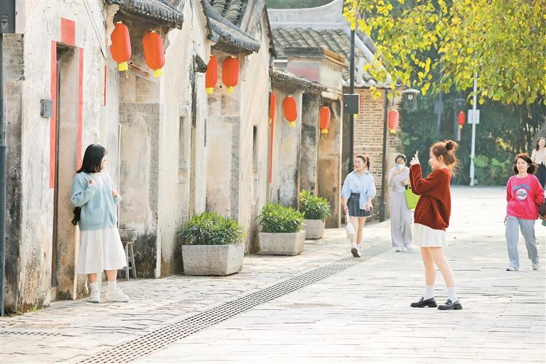 ▲游客在观澜版画村驻足拍照。