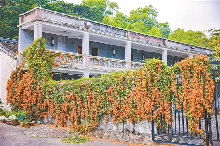 ▲广培社区公交站台附近的炮仗花迎来了盛开的季节。