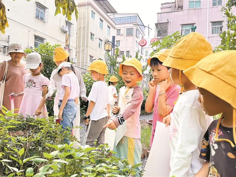 青少年在茜坑老村“半亩田园”学习自然科普知识。