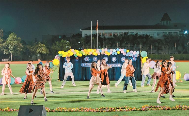 美中学校举办才艺大赛,学生们登上舞台,通过歌曲艺的形式展现艺术教学成果。