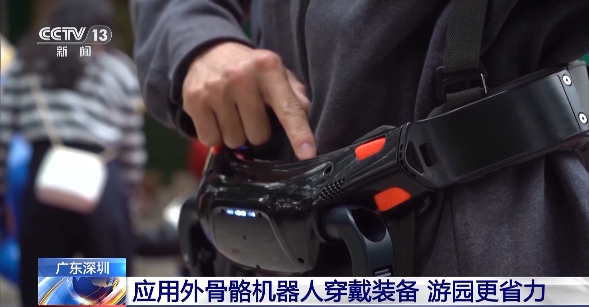 在深圳野生动物园入园广场的体验区,外骨骼机器人体验项目吸引了不少市民游客。该设备重1.8公斤,能够实时感知用户动作并提供动态助力。