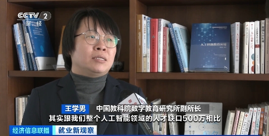 中国教科院数字教育研究所副所长 王学男:2024年(人工智能)整个专业的在校生人(数),大概超四万(名),其实跟我们整个人工智能领域的人才缺口500万(名)相比,差距还是很大。人工智能人才的培养和这些企业的需求之间,还存在着一些脱节的问题,要加速产学研一体化,也就是给科研加速它们转化的效率,压缩现在的创新或转化的流程。