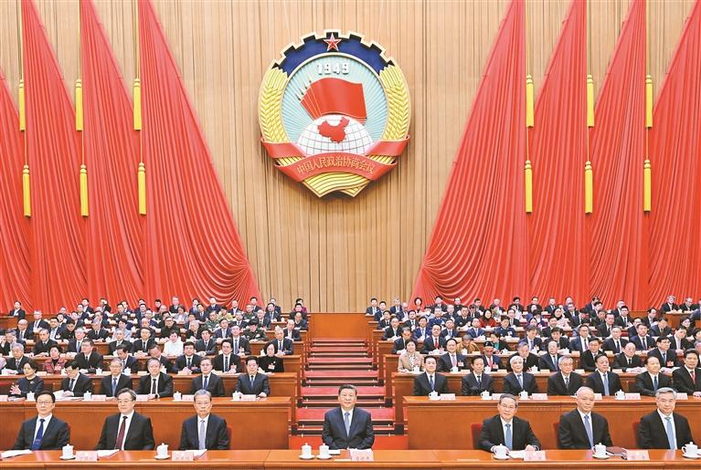 习近平李强赵乐际蔡奇丁薛祥李希韩正到会祝贺 王沪宁作政协常委会工作报告 石泰峰主持 蒋作君作提案工作情况报告。